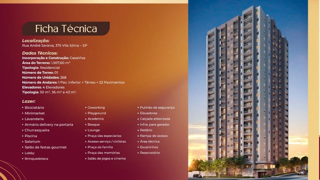 Esse projeto está listado como breve lançamento, o que significa que ainda está em fase de pré-venda ou planejamento. A Casa Viva costuma focar em empreendimentos com áreas comuns bem equipadas e boa localização, voltados para quem busca conforto e praticidade.