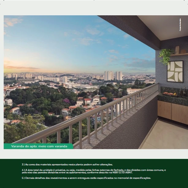 Varanda gourmet (“grill”) nos apartamentos, incentivando convivência social.