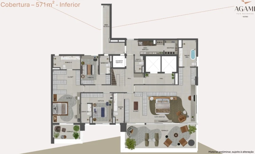 Coberturas Duplex de até 571 m² e outras variantes.