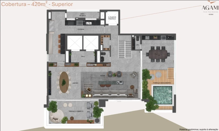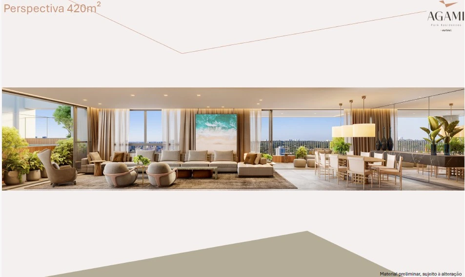 Conceito: O Agami Park Residences é descrito como uma “escultura de viver”, um projeto que combina arquitetura de impacto com funcionalidade e integração ao entorno natural, justamente ao lado do Parque Ibirapuera, um dos maiores e mais valorizados espaços verdes da cidade.