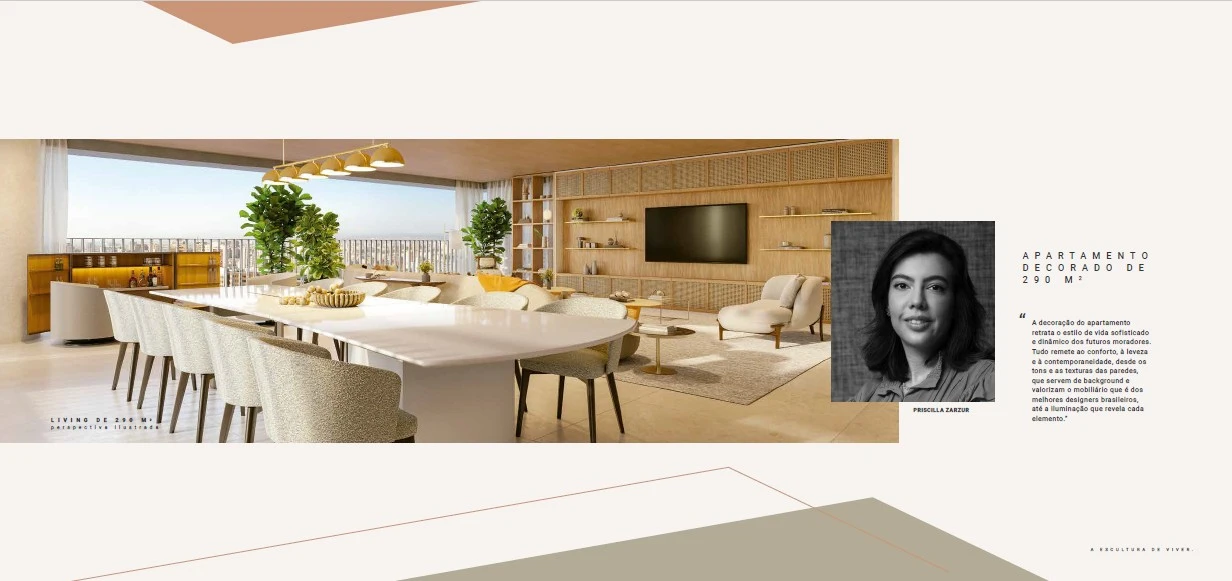 Apartamentos tipo de 215 m² e 290 m² com 3 ou 4 suítes;