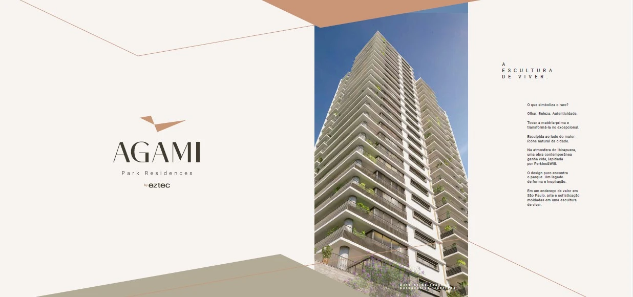 O Eztec desenvolveu o Agami Park Residences como um empreendimento residencial de altíssimo padrão em Moema, São Paulo, com uma proposta arquitetônica e urbana que une design contemporâneo, exclusividade e proximidade com o verde do Parque Ibirapuera.