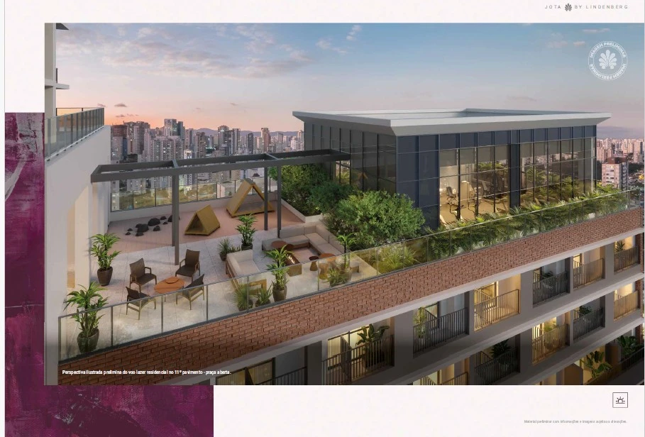 Entre os diferenciais do condomínio estão dois rooftops com áreas de lazer, piscina com raia, academia, espaços gourmet, coworking e áreas de convivência que proporcionam uma experiência moderna de moradia. A arquitetura e os ambientes foram planejados para valorizar a vista da cidade e oferecer qualidade de vida aos moradores.
