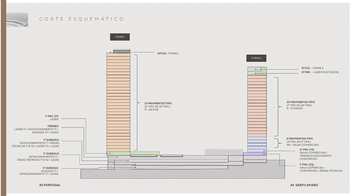 Ele combina, torre residencial,torre de offices (home office exclusivo), áreas de convivência e serviços ou seja, um modelo moderno de “live + work” dentro do mesmo condomínio.