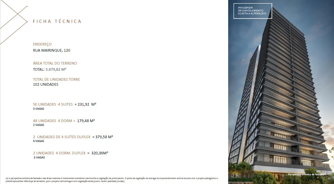 Esse empreendimento une sofisticação, conforto e exclusividade em uma das regiões mais valorizadas de São Paulo, ideal para quem busca qualidade de vida urbana com proximidade de áreas verdes e mobilidade.