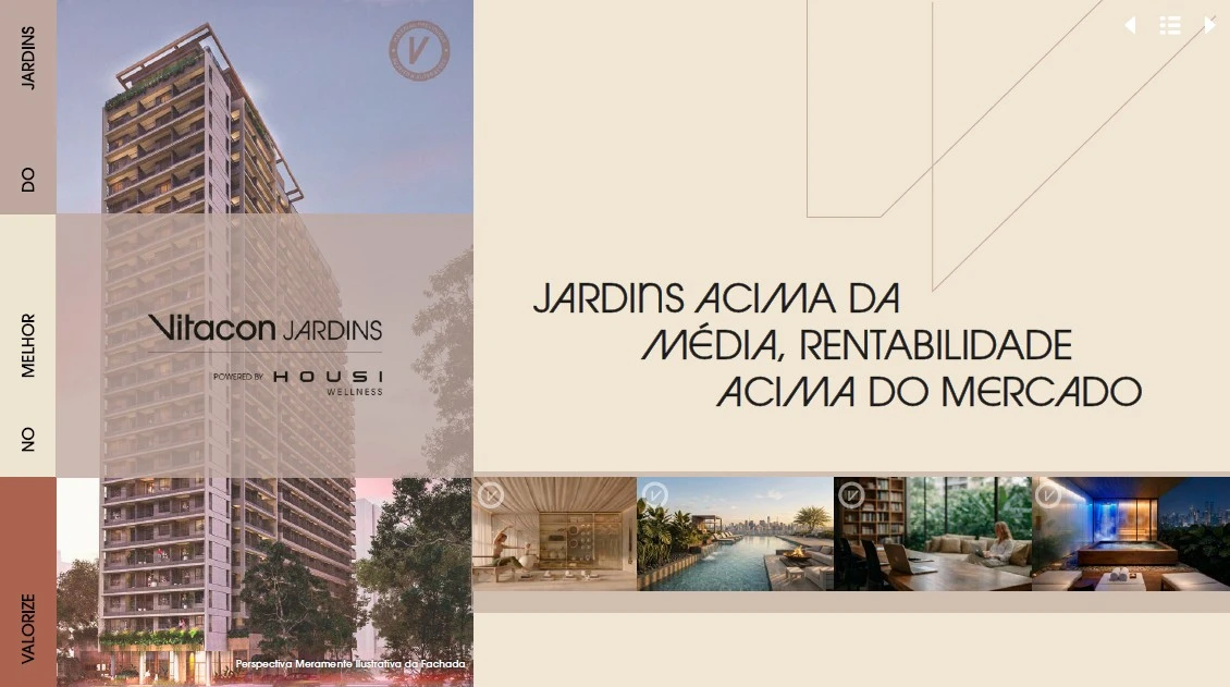 O projeto Jardins by Vitacon, da Vitacon, é um empreendimento residencial localizado no bairro Jardins, em São Paulo, conhecido por sua proposta moderna e compacta.