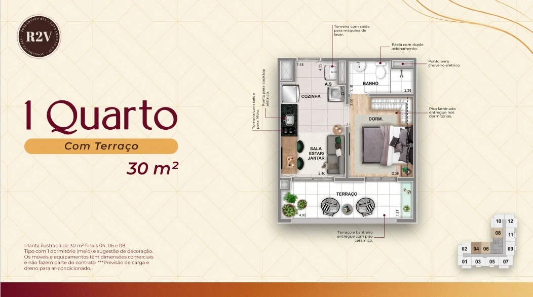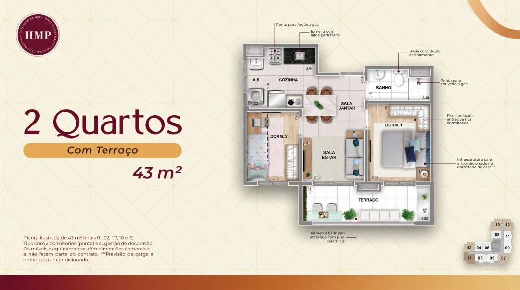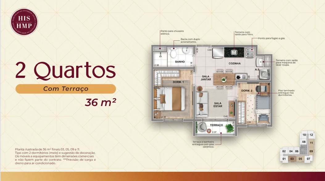 Tipologia: Apartamentos de 1 e 2 dormitórios