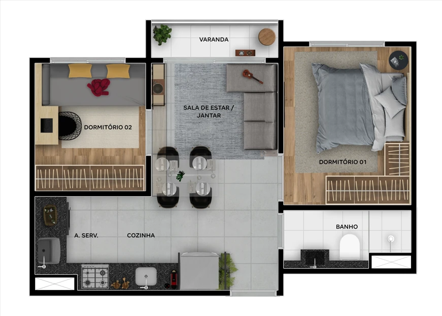 Condomínio com lazer completo: salão de festas, playground, espaço fitness e mais